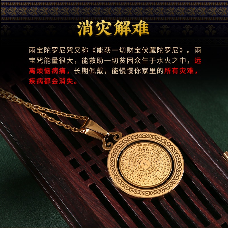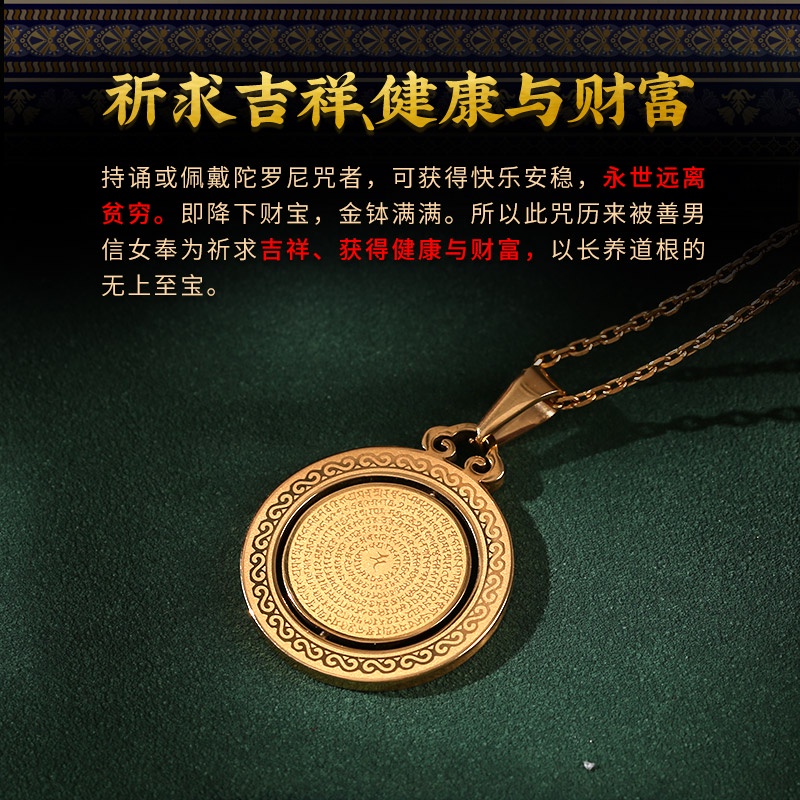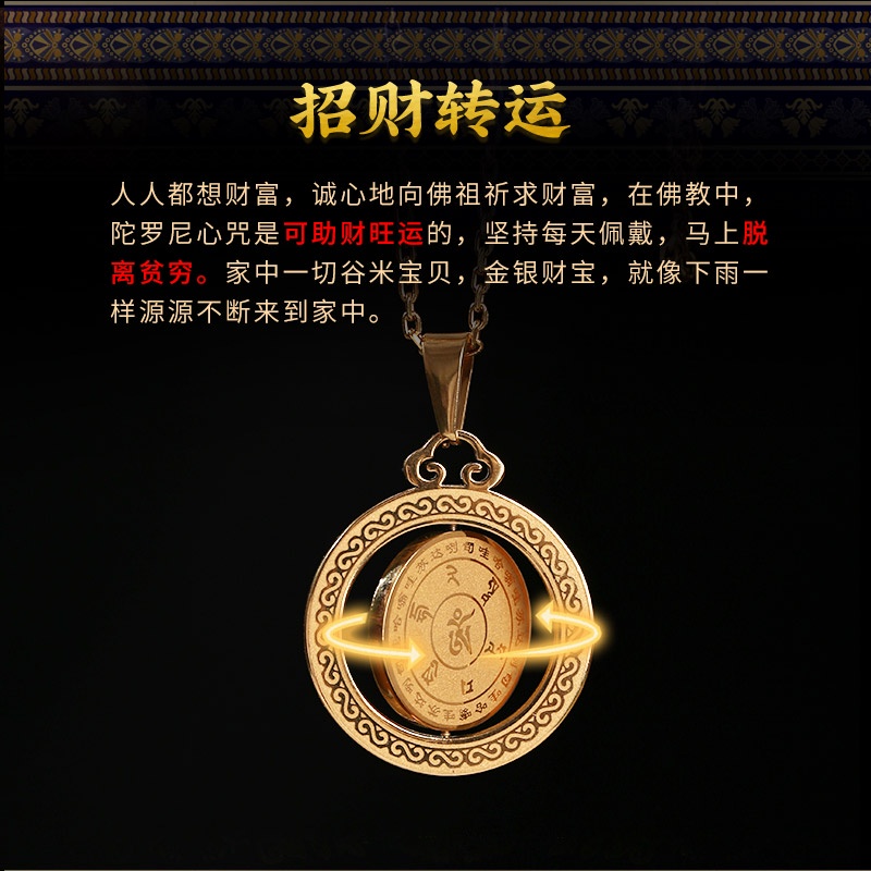 【?送手抄佛经?】升级版-发财神坠 招财纳福雨宝陀罗尼吊坠 招财纳福 补财库 脱离贫穷 消解业障 开光正品 天珠项链挂件 可转动 Authentic Blessed Necklace Gold Plated Fortune Pendant Charm Fengshui