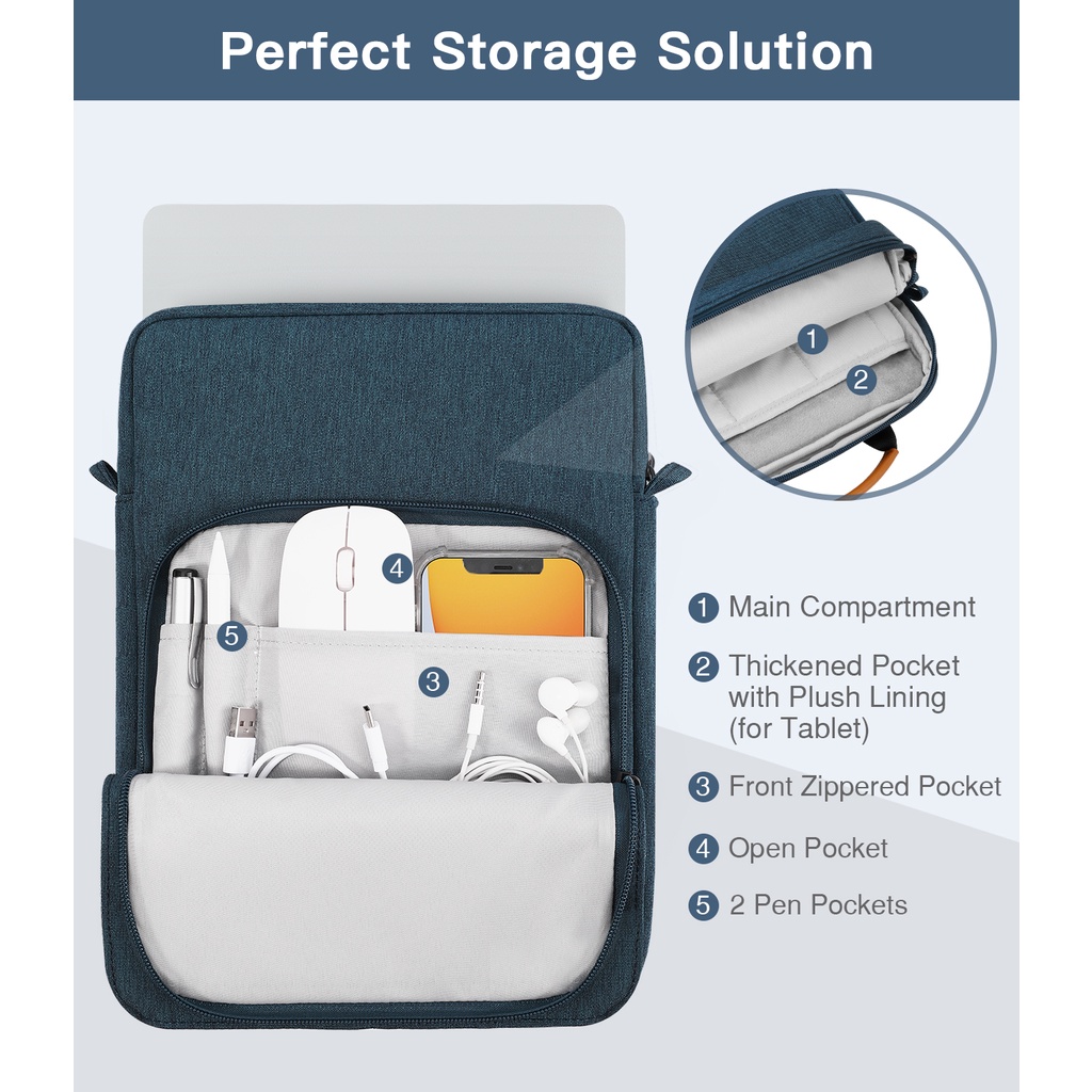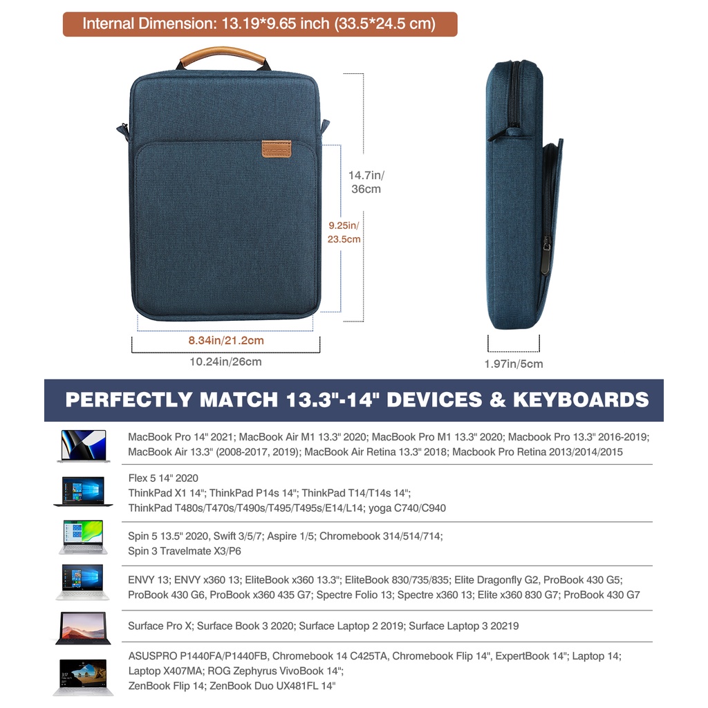 MoKo 13.3-14 Inch Handle Carrying Laptop Sleeve Bag Fits Macbook Pro 13" M2 2022/Pro M1 Pro/M1 Max 14.2 2021, Macbook Air 13.6" M2 2022, Tab S8 Ultra 14.6", with Shoulder Strap
