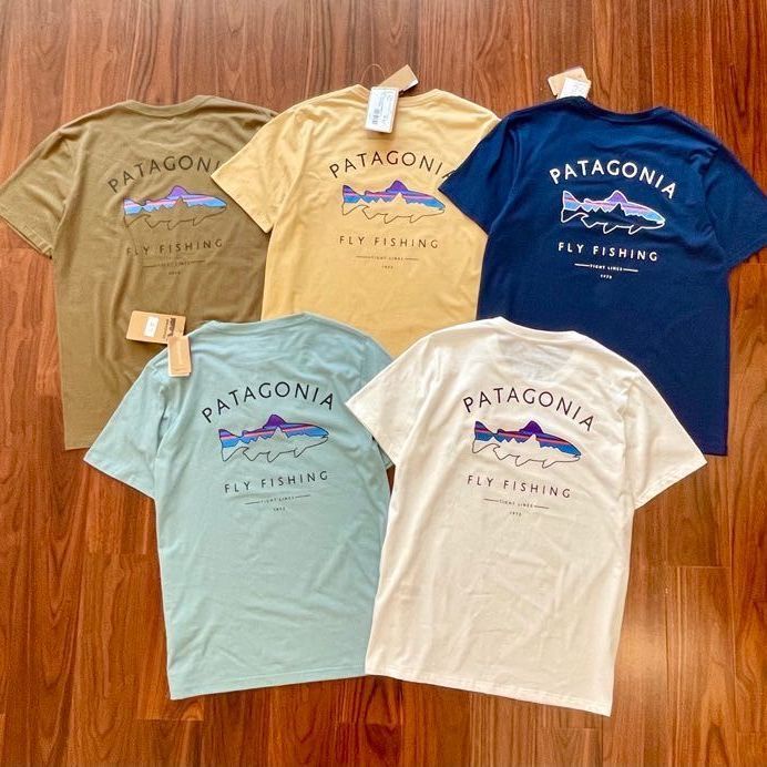Pa back flying fish crewneck casual fashion print couple short sleeves