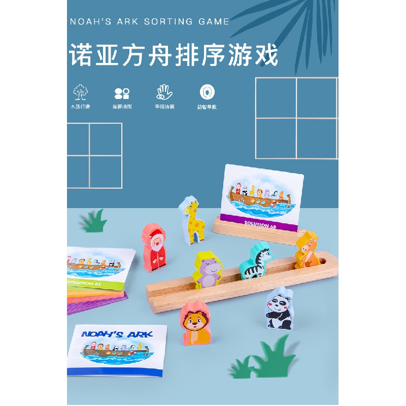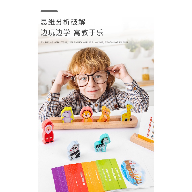 Spot Noah's Ark sorting game customs clearance problem solving children's logic parent-child table game challenge level wooden educational infant Park baby Festival small toy birthday gift